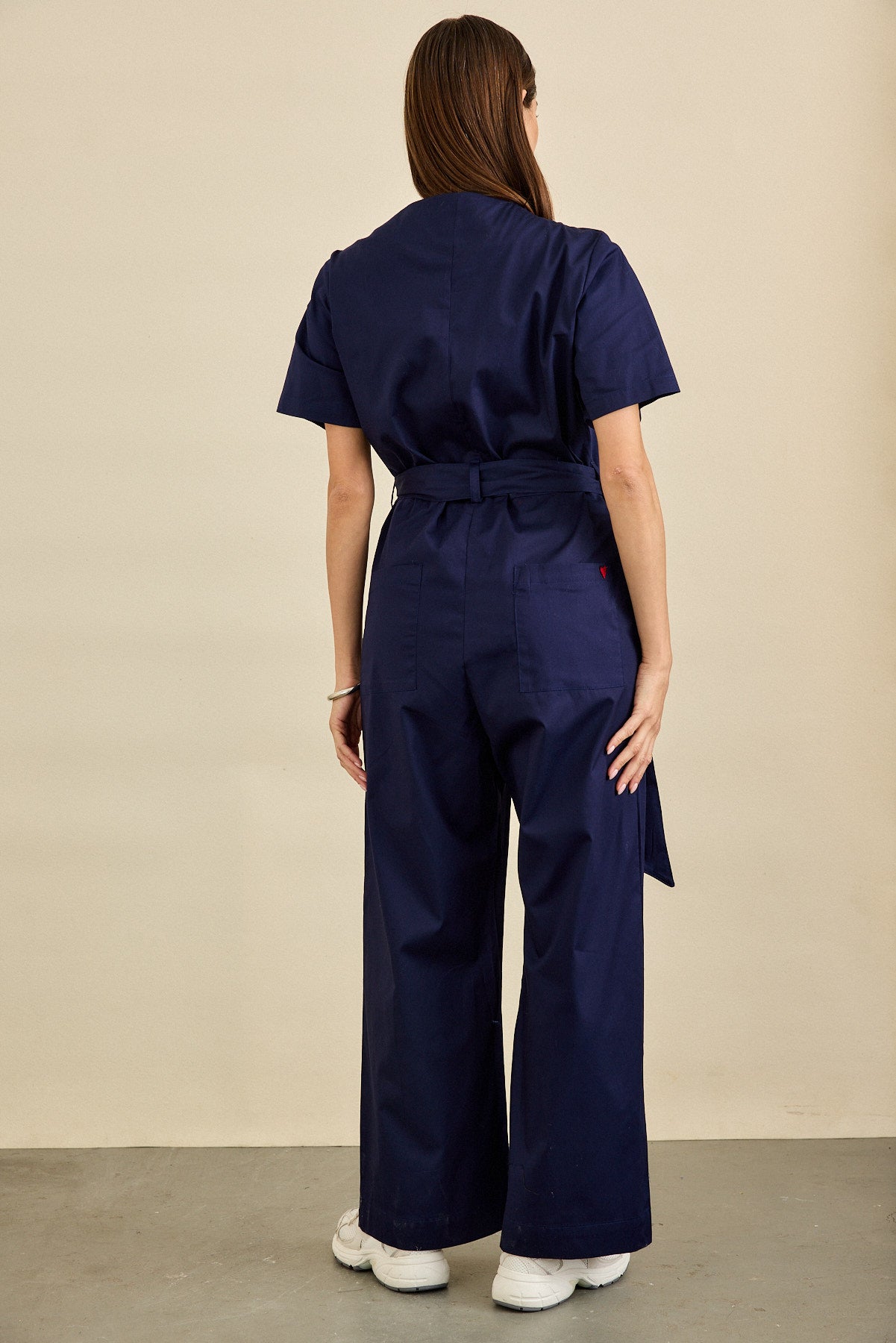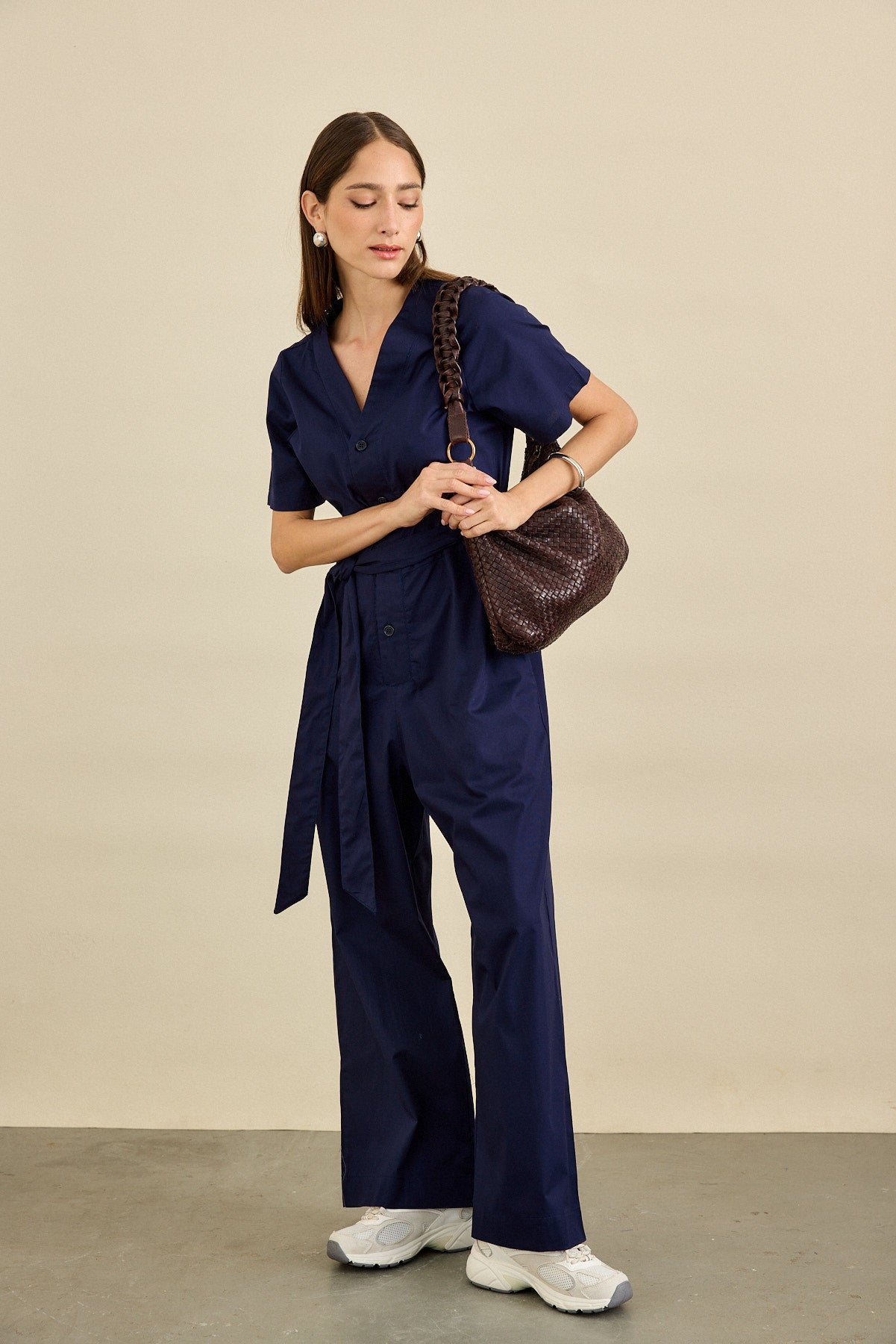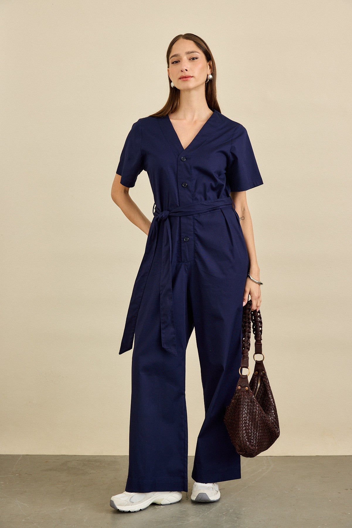 אוברול עשויי בד אריג עם מעט לייקרה,