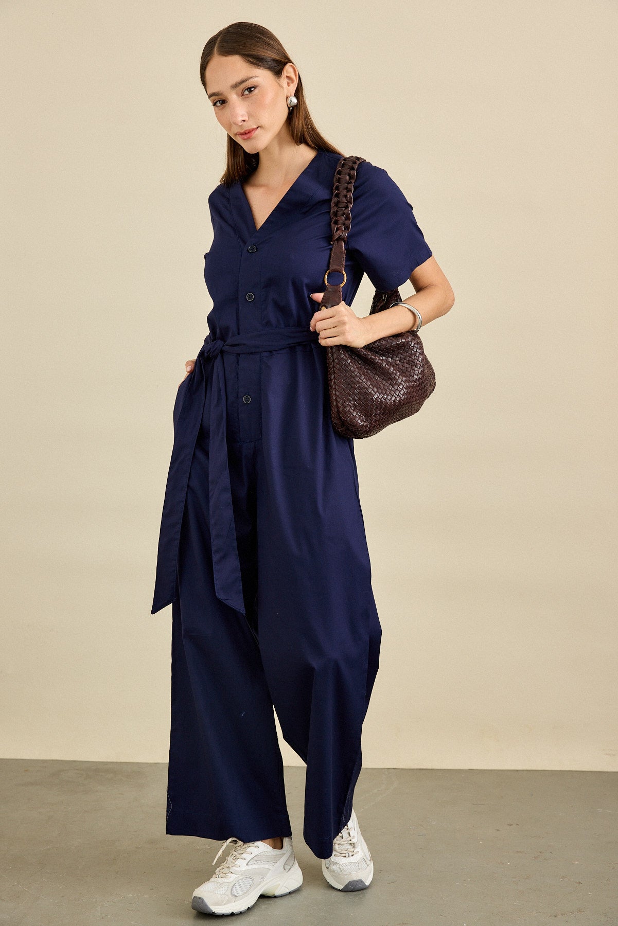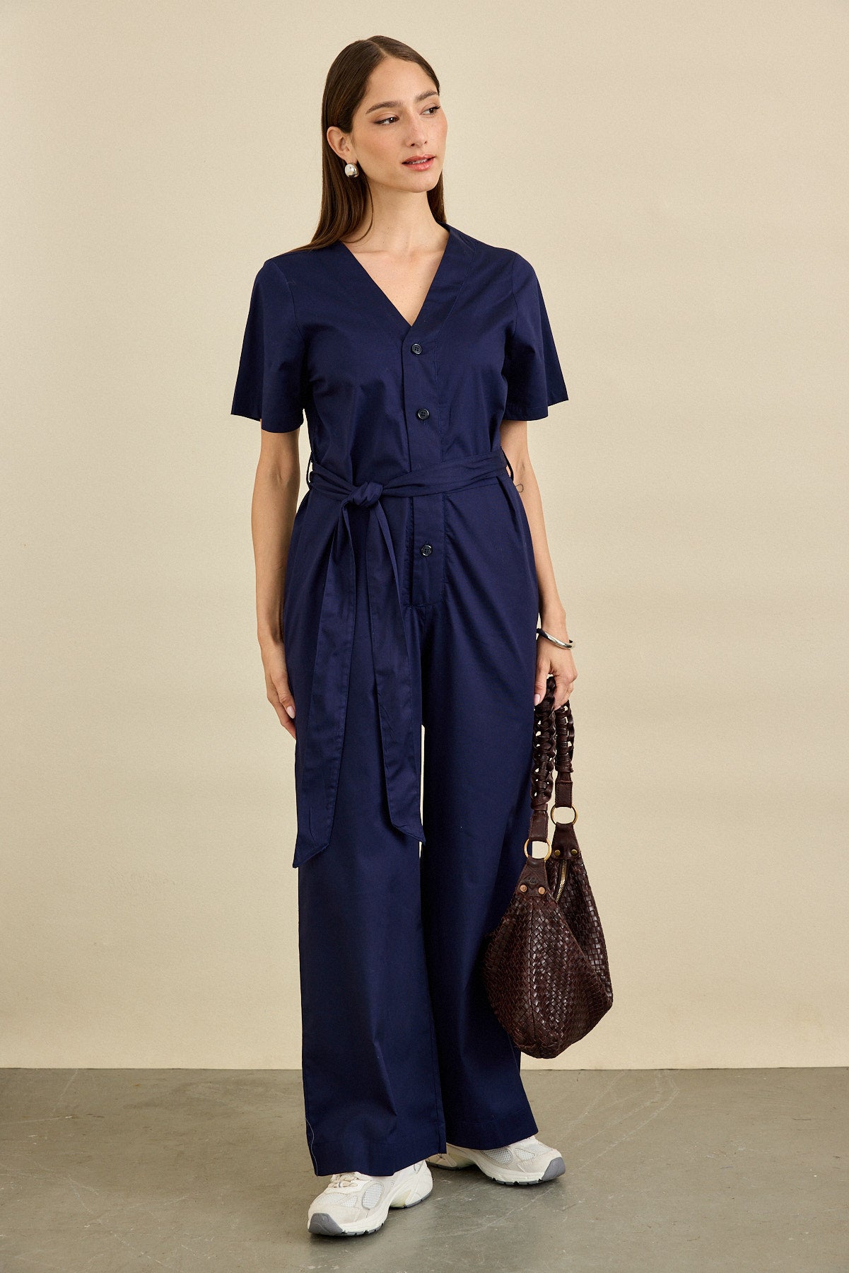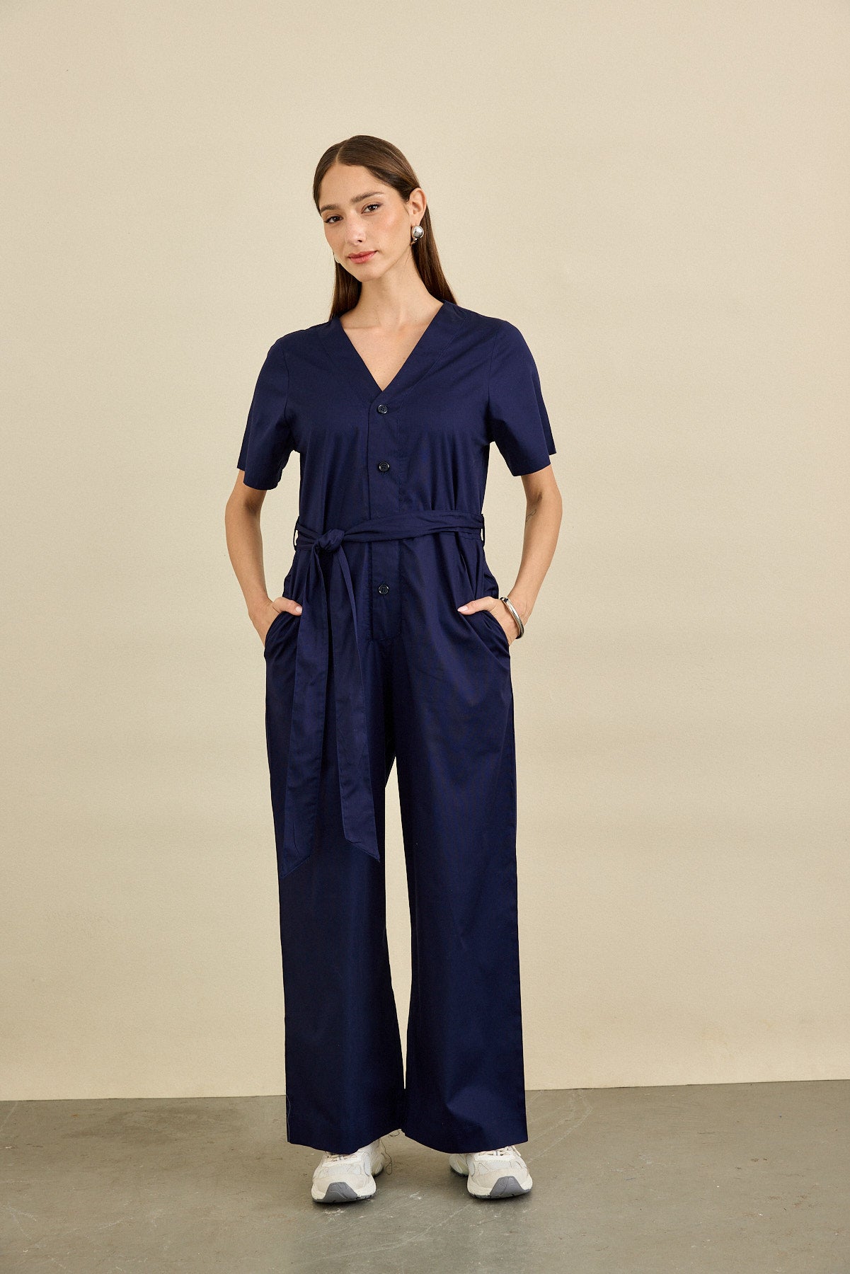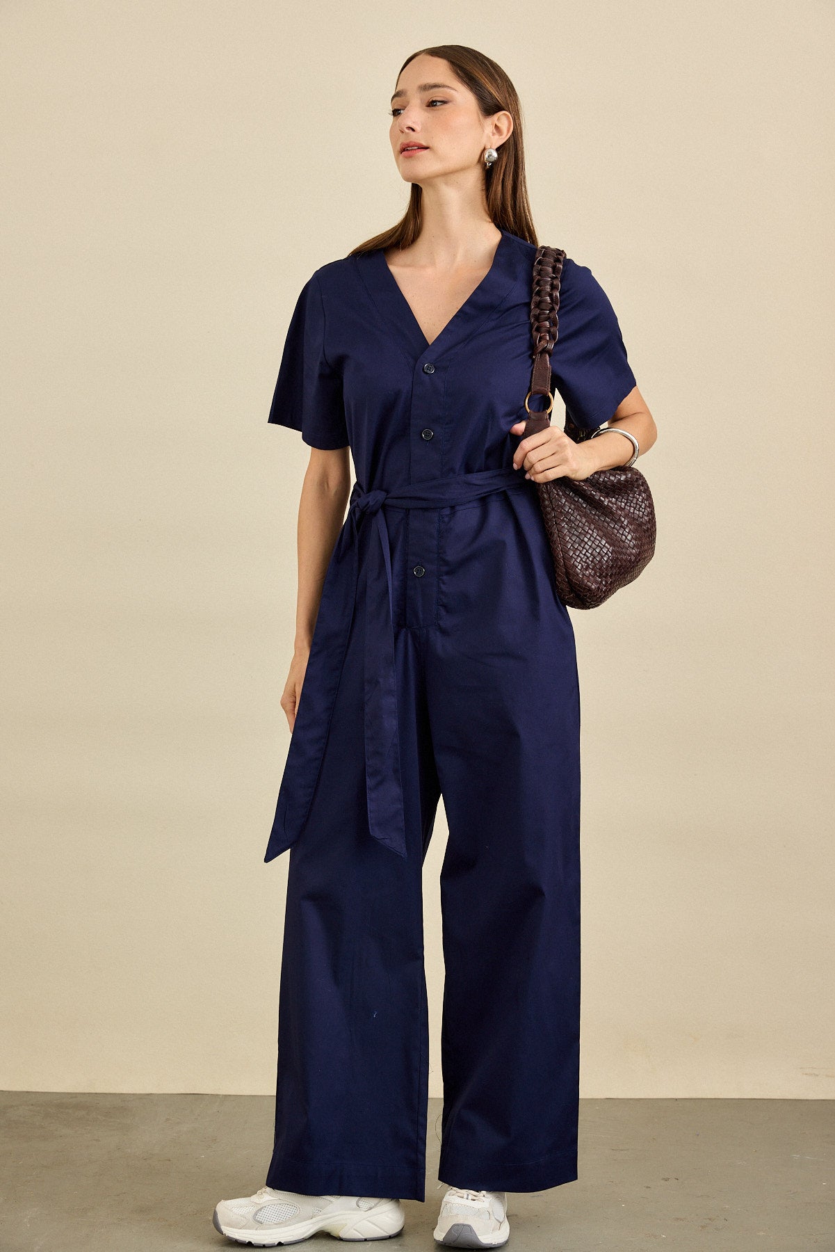 אוברול עשויי בד אריג עם מעט לייקרה,