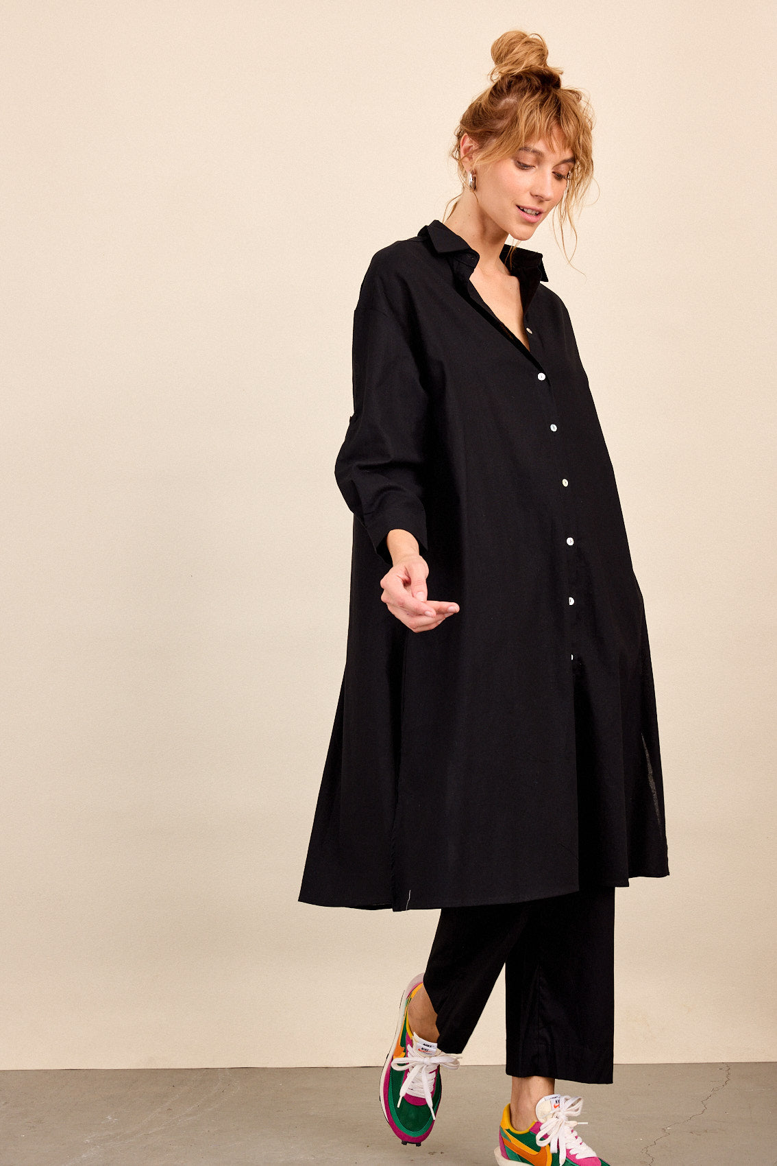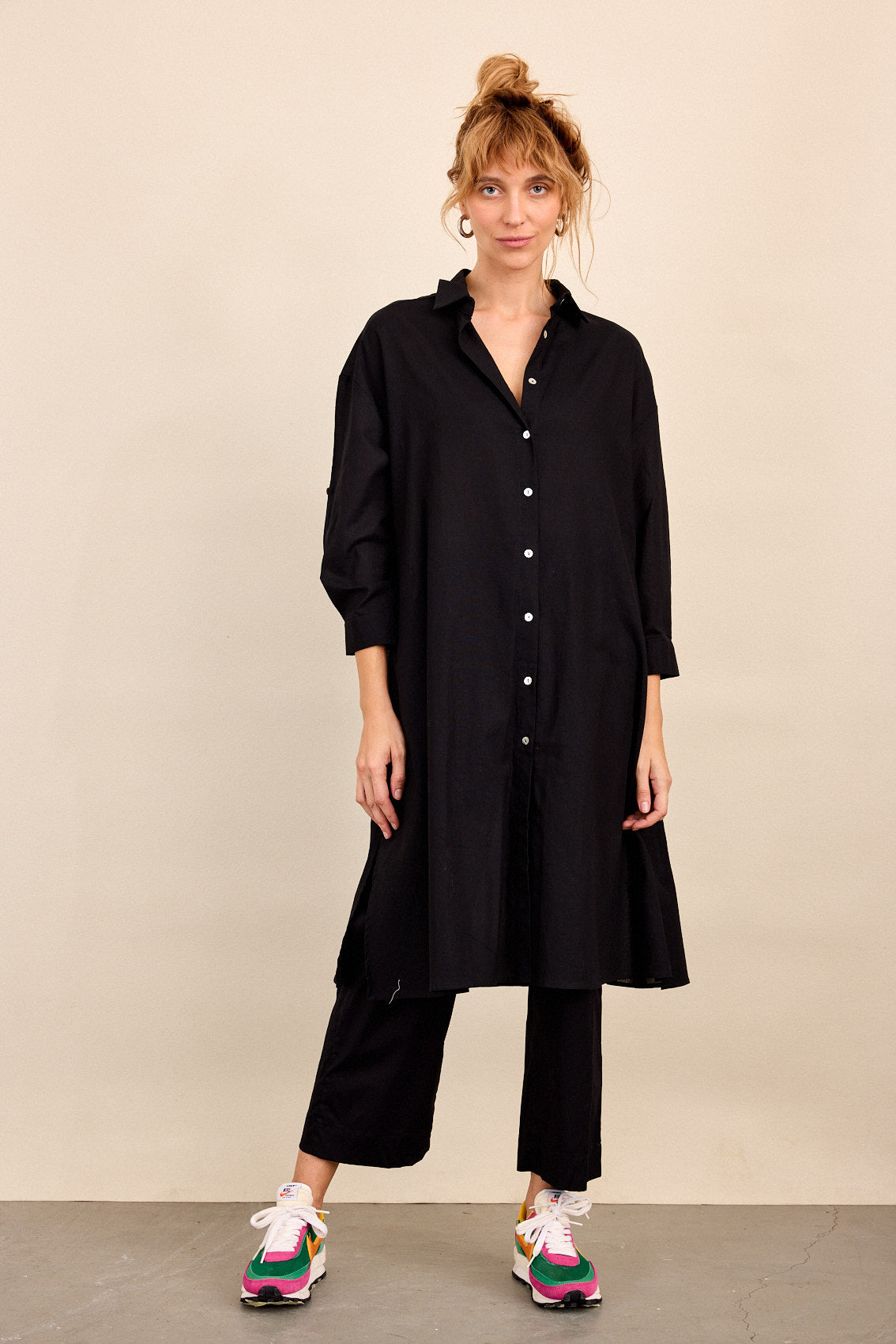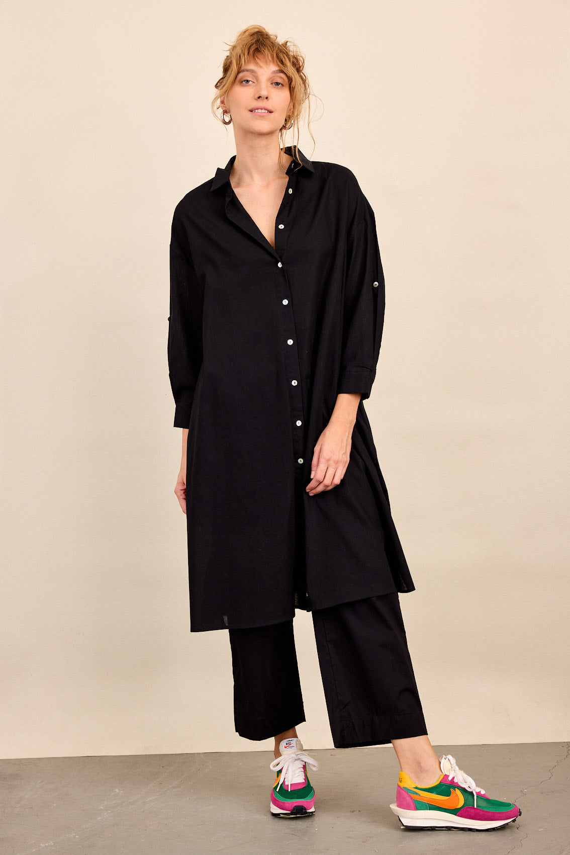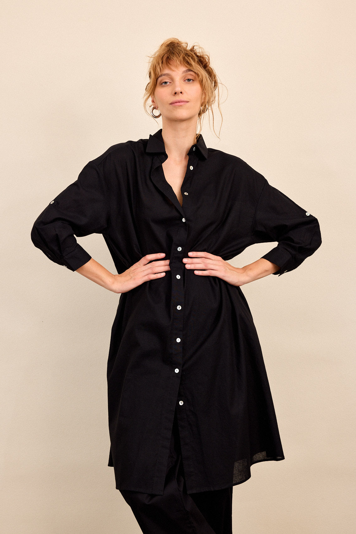 החולצה באורך שמלה אז יכולה לשמש גם כשמלה, גם כעליונית וגם כחולצה