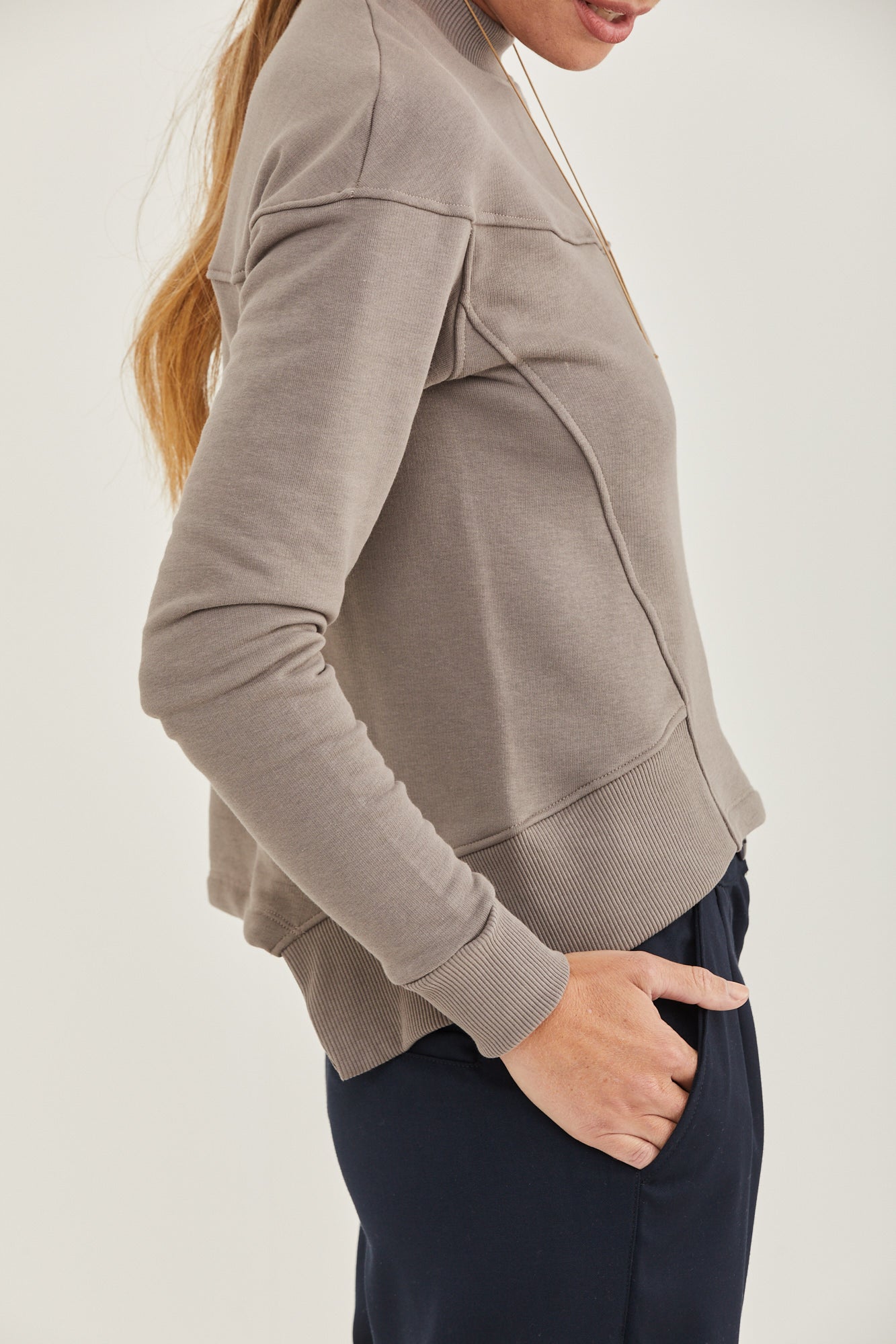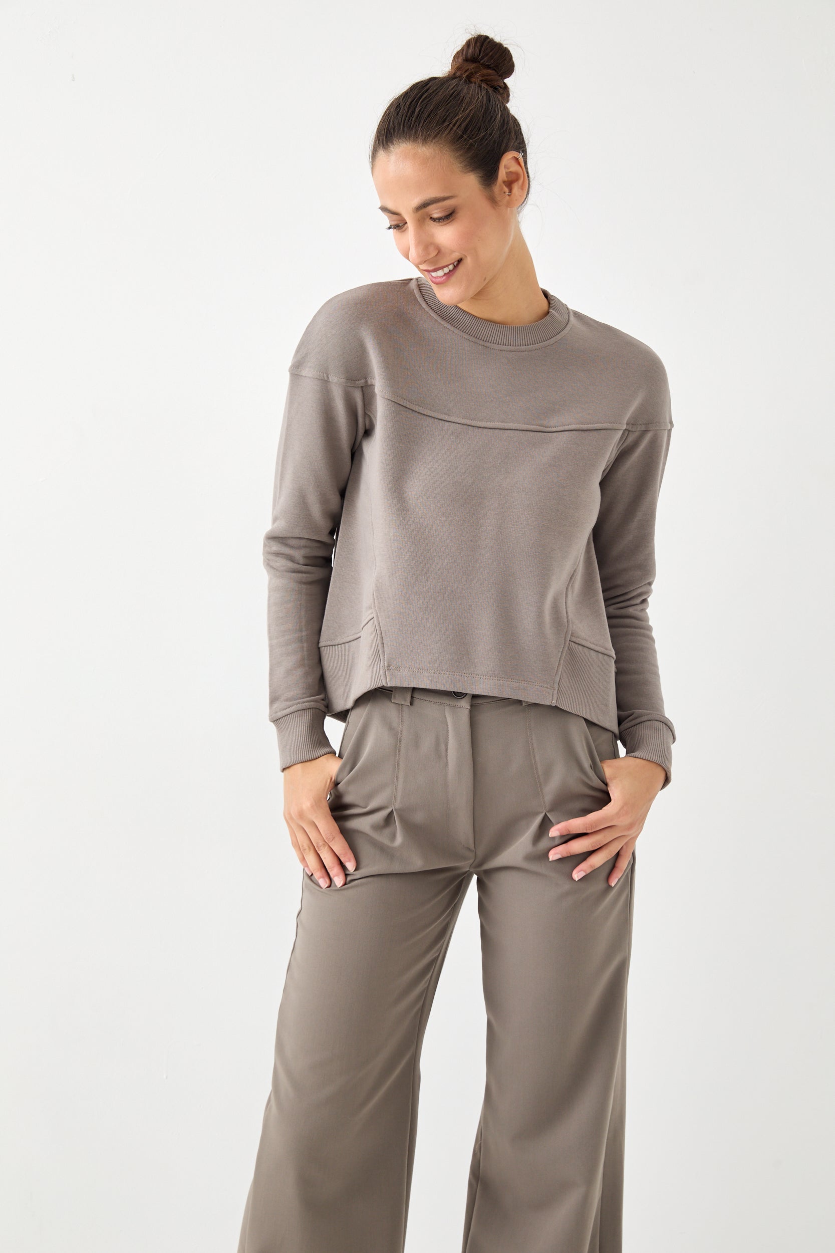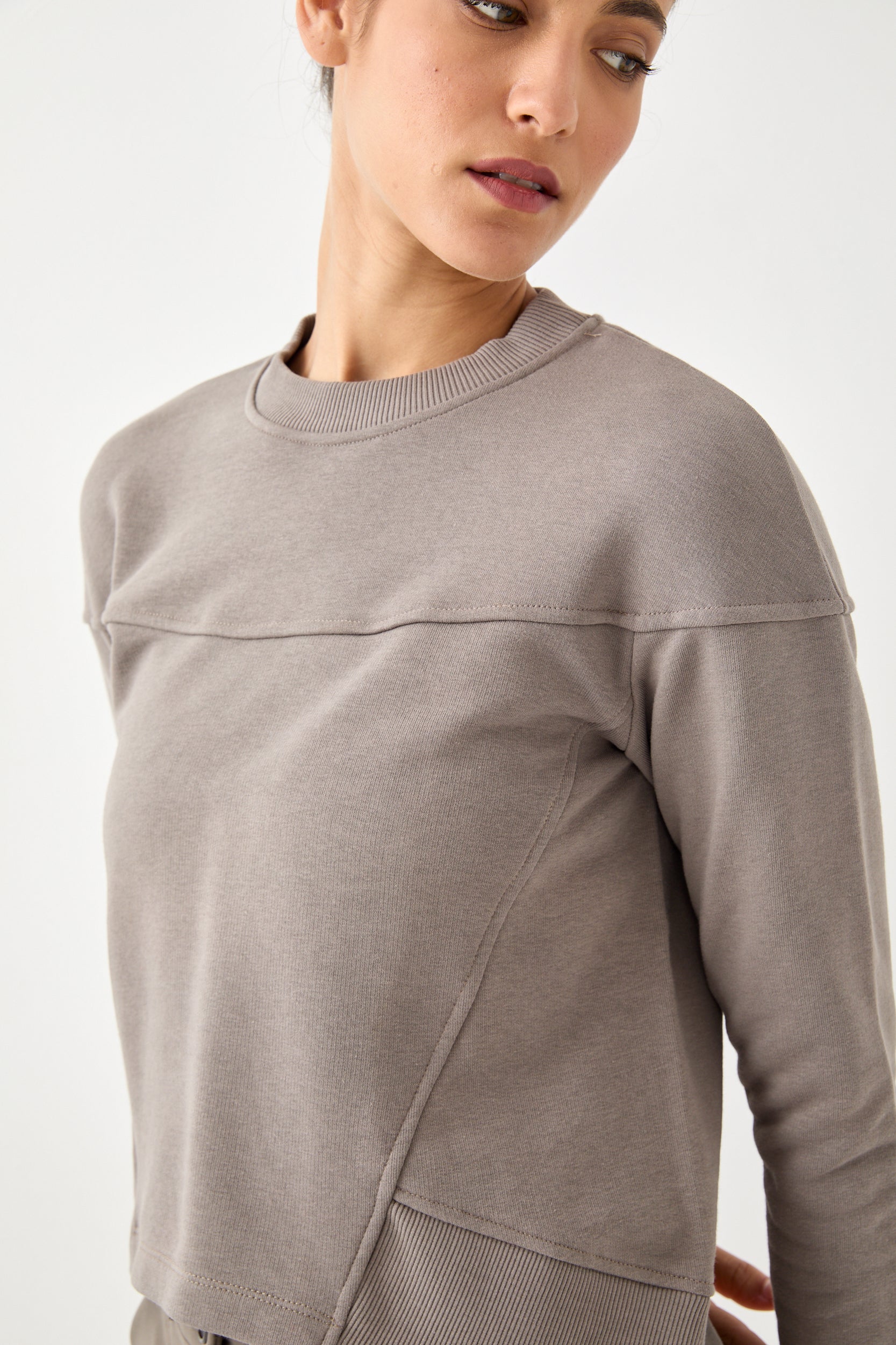 סווטשרט חתכים עם אלמט של ריב בצידי הגוף, חתך בכתף, ואורך משתנה. הרכב הבד: 100% כותנה