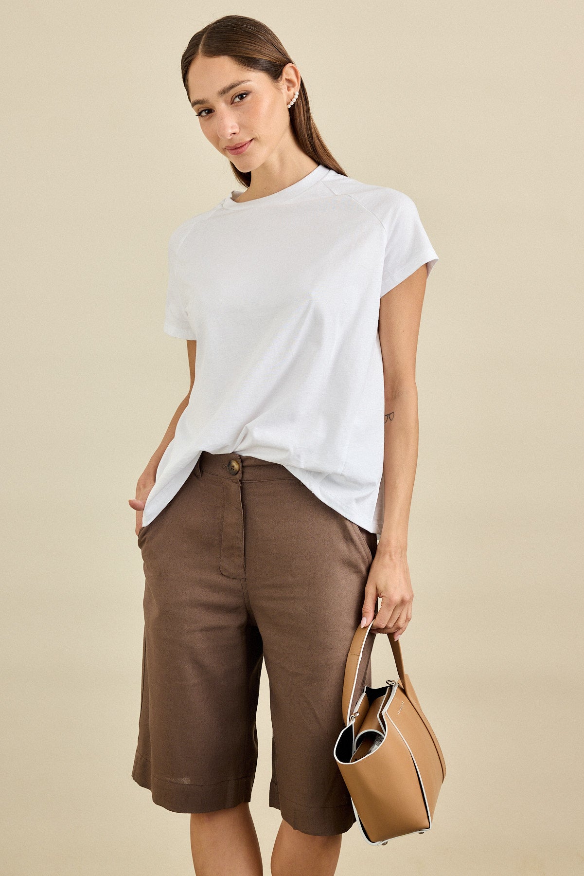 מכנסיים עשויות בד רך וטבעי עם נפילה יפה ומחמיאה.