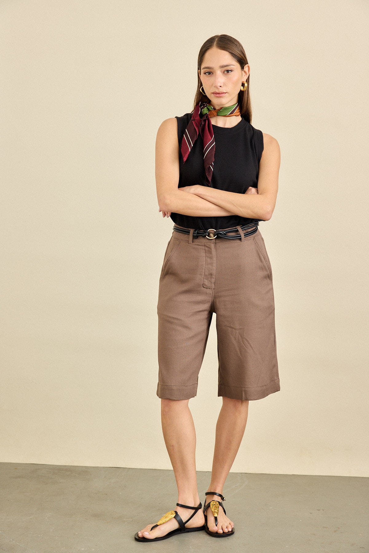 המכנסיים באורך ברך.