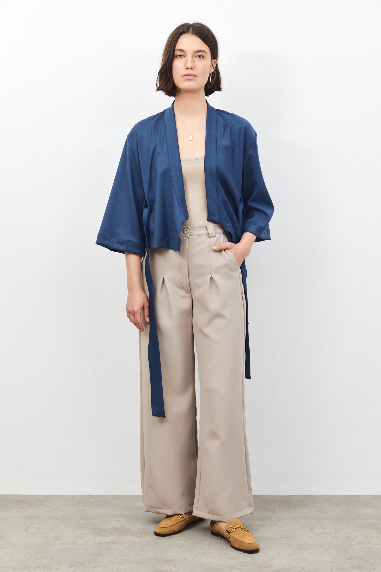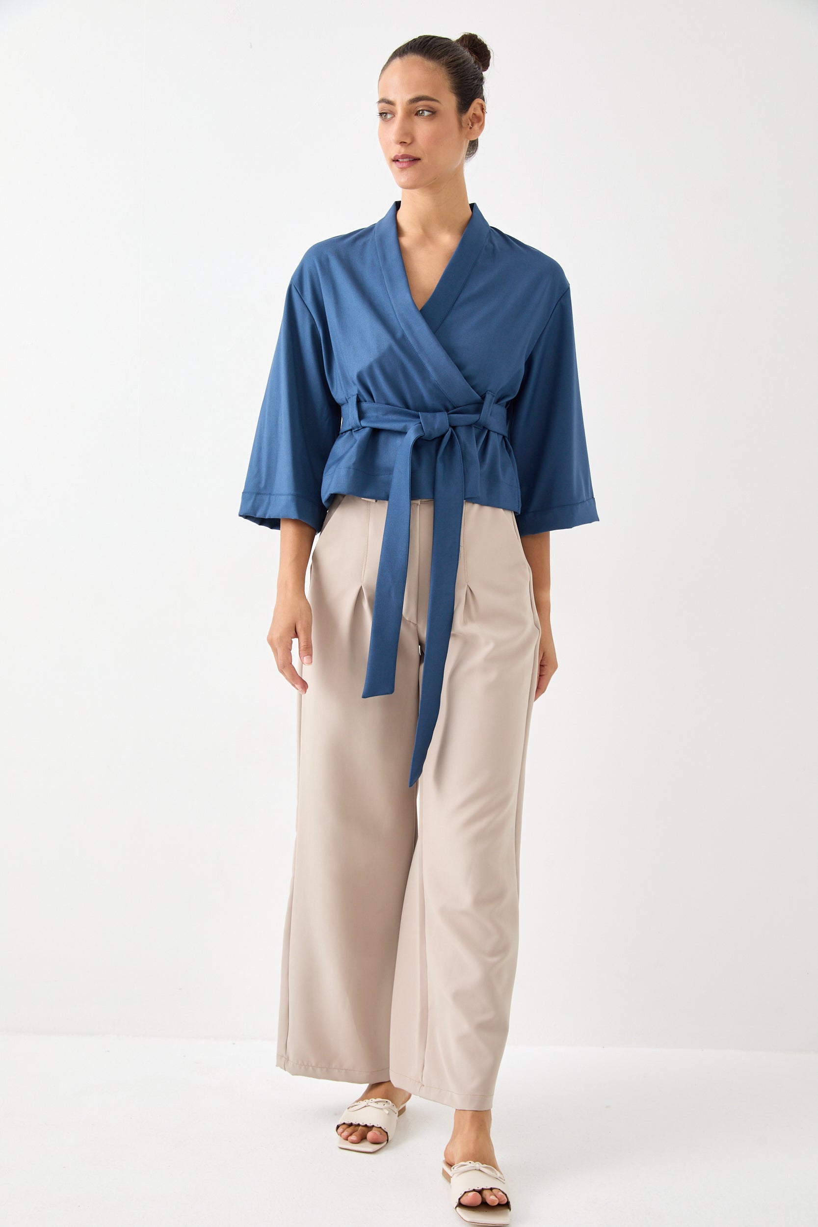 עשויי 64% ויסקוזה, 33% פוליאסטר ו3% לייקרה.