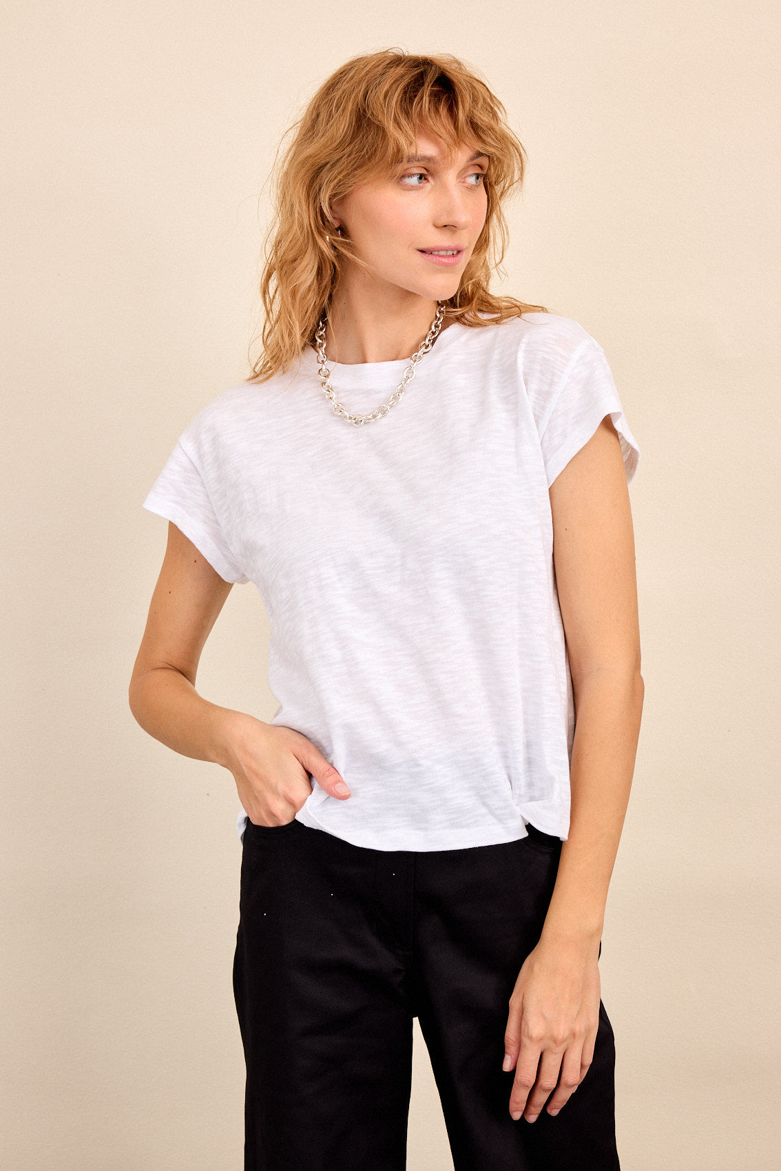 חולצה עם שרוול קצר, מפתח צווארון עגול