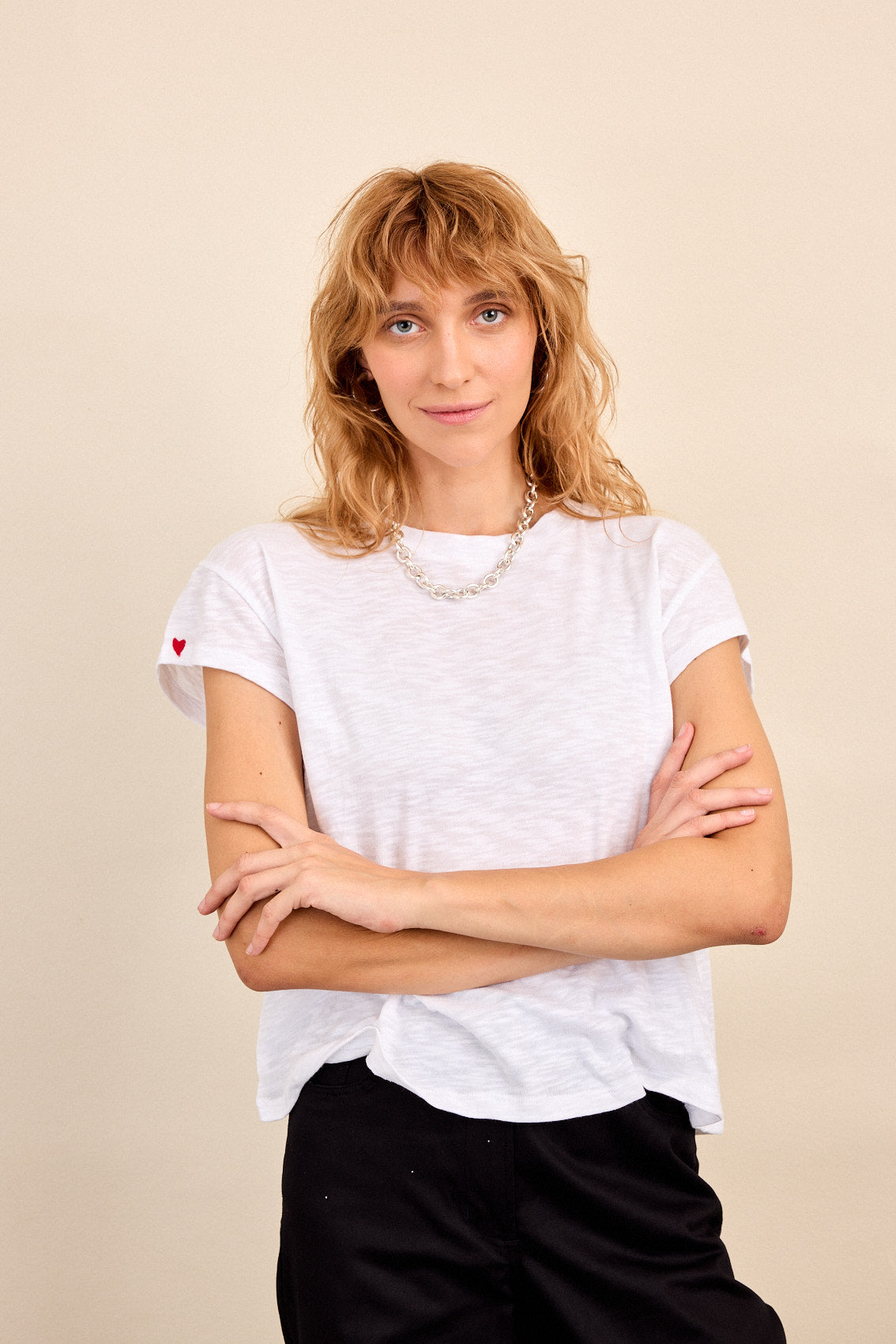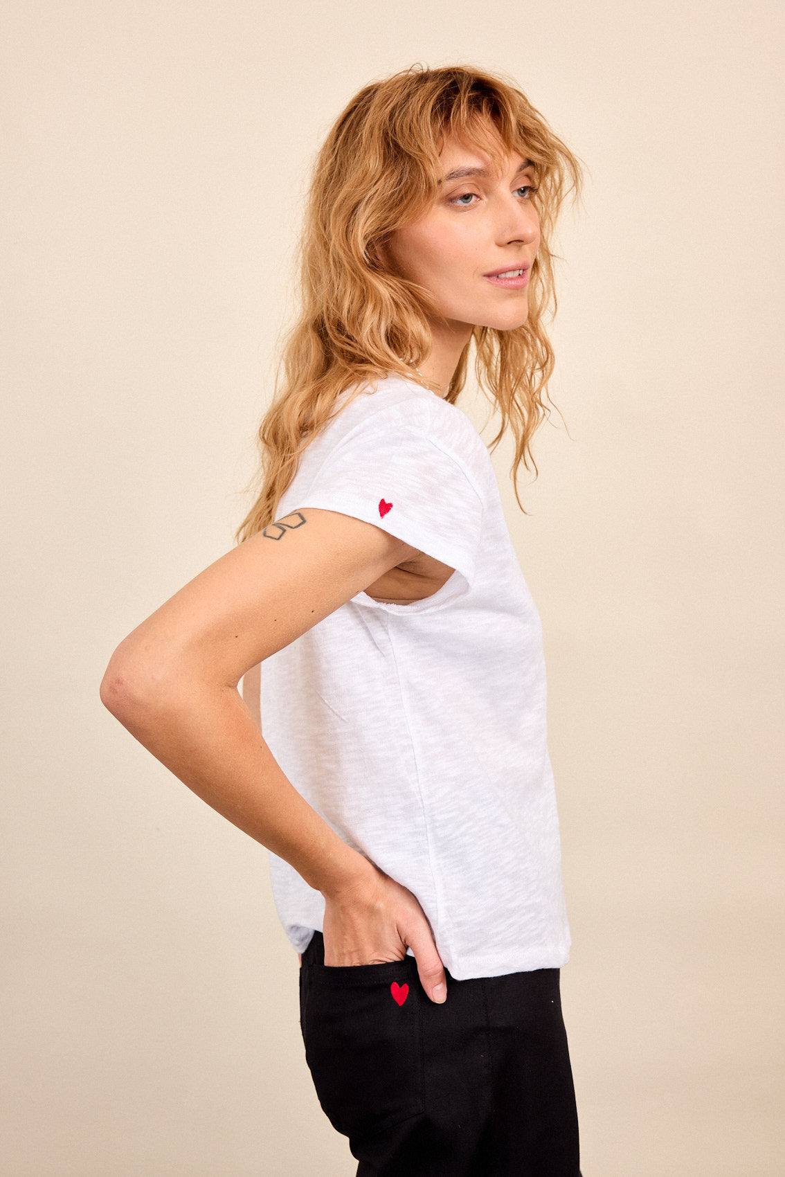עם אלמנט של לב רקום בקצה השרוול