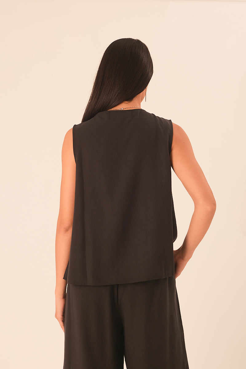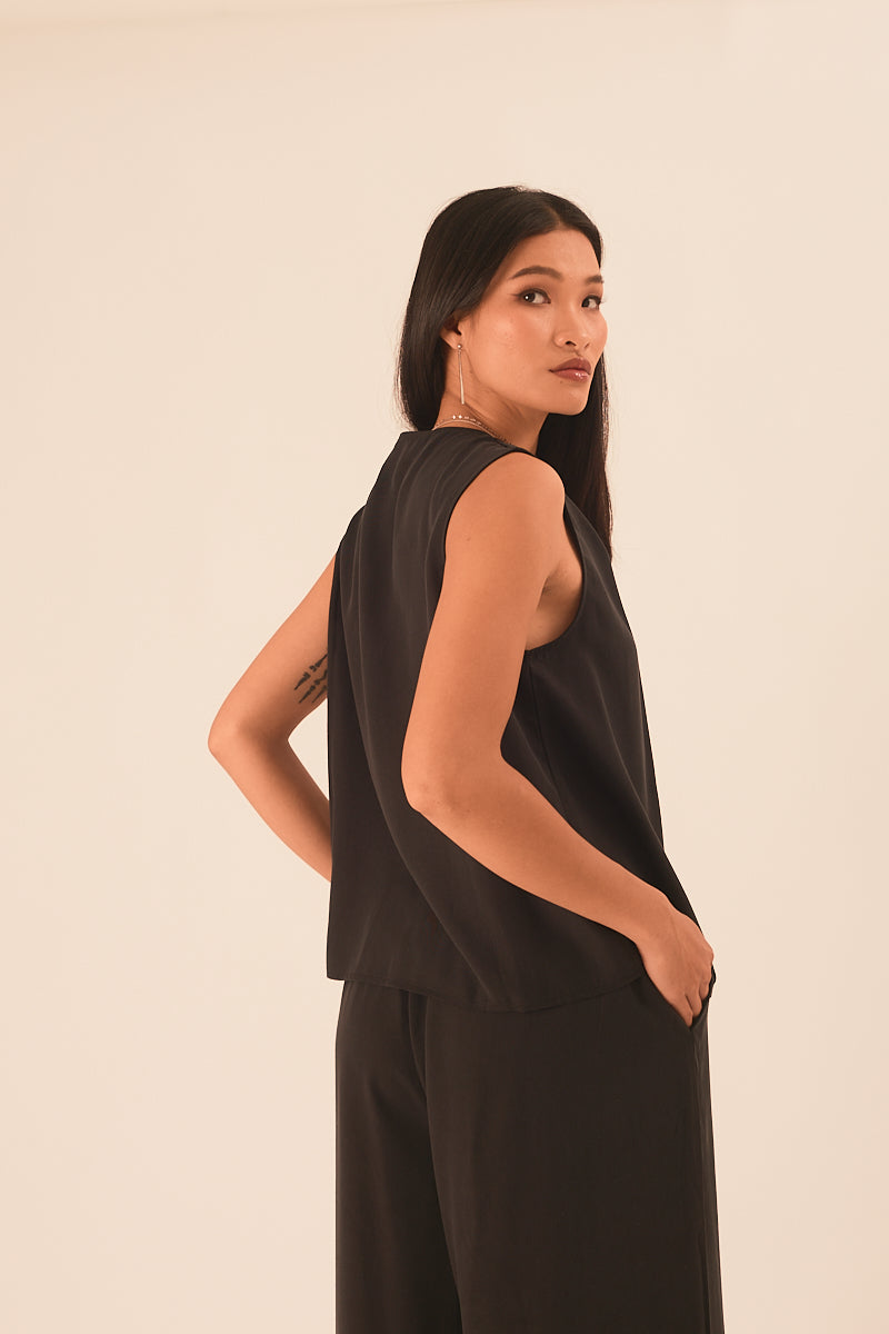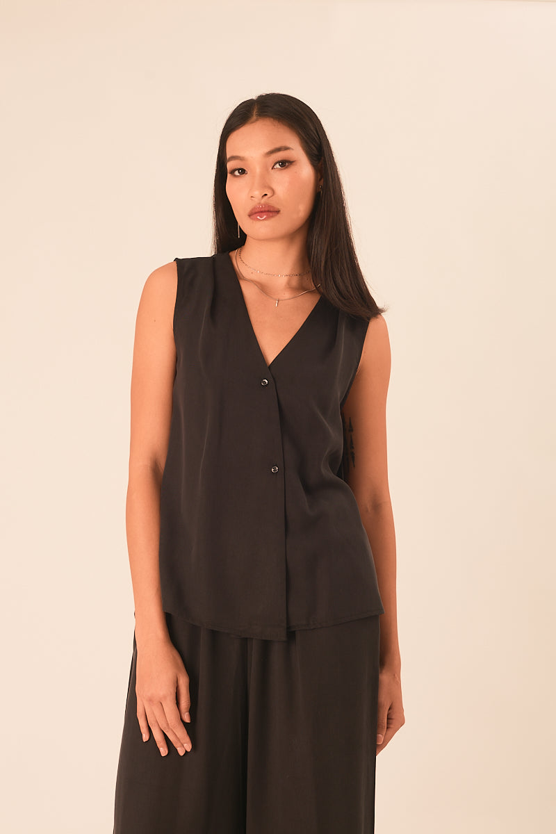 וסט משוחרר אך מחמיא, עם מפתח וי וקיפול עדין בקו הכתף