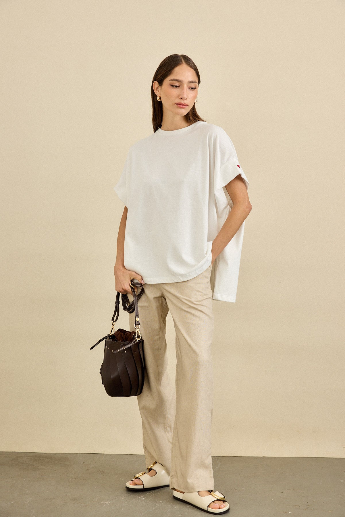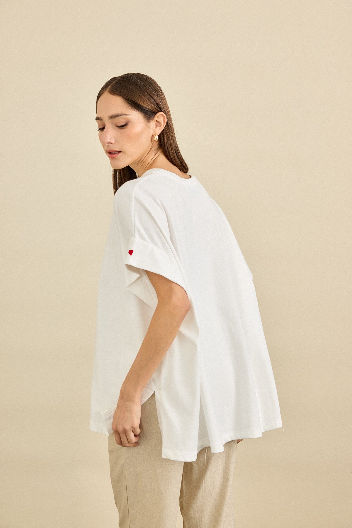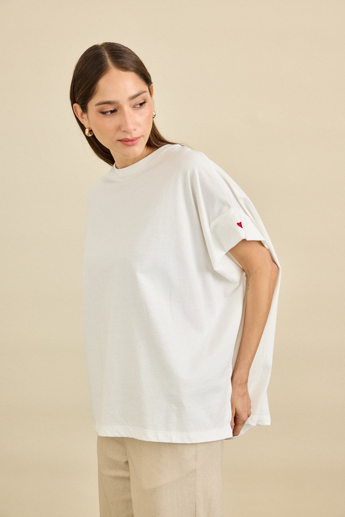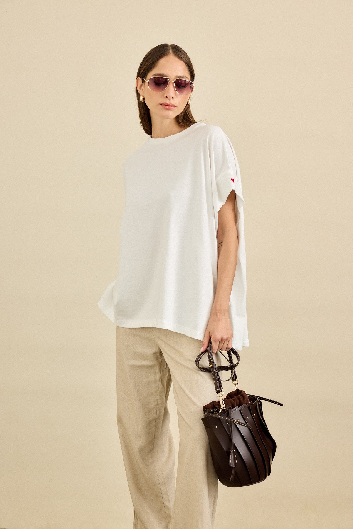לחולצה אלמנט קיפול מיוחד בכתף, מה שמקנה לה ייחודיות של ממש