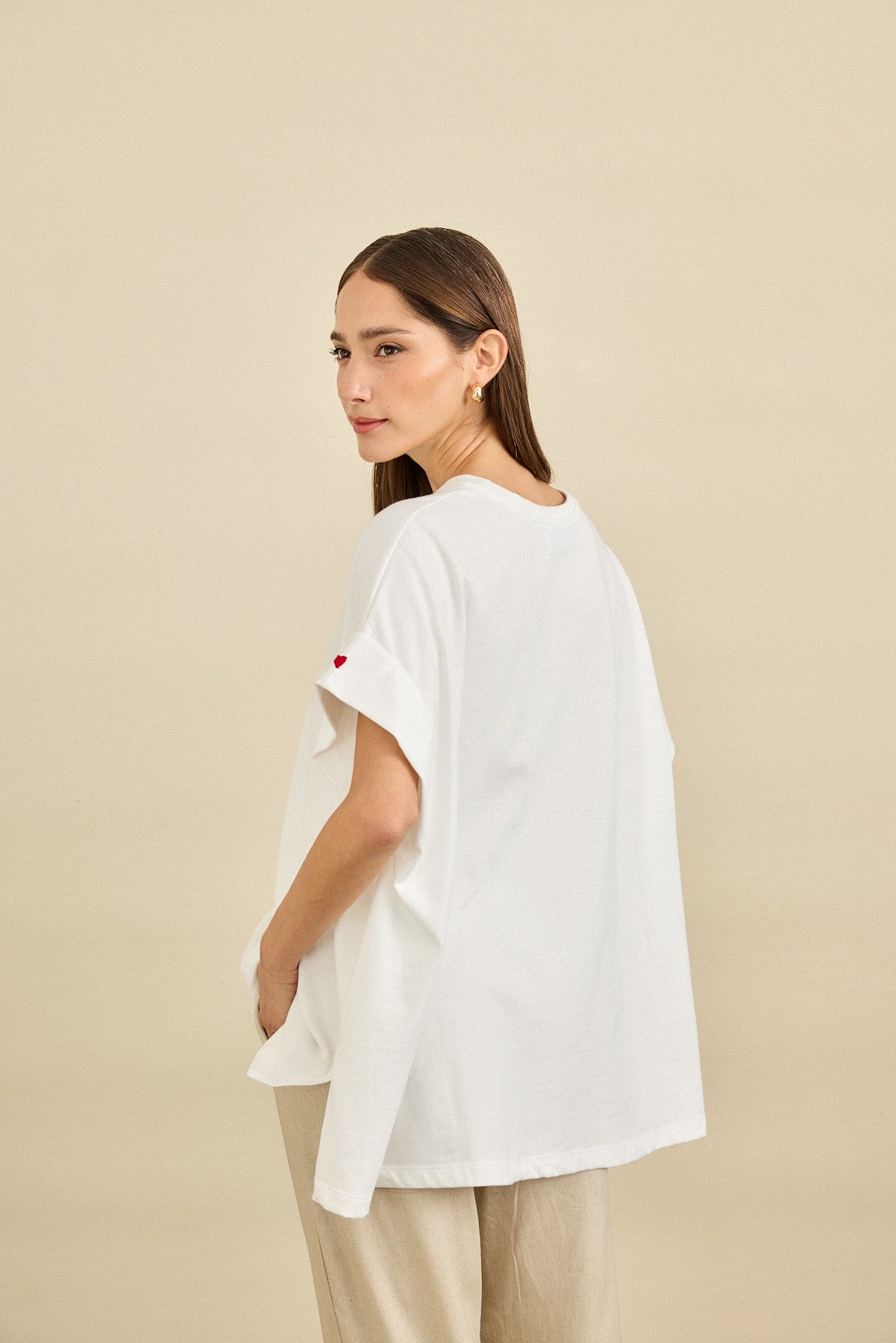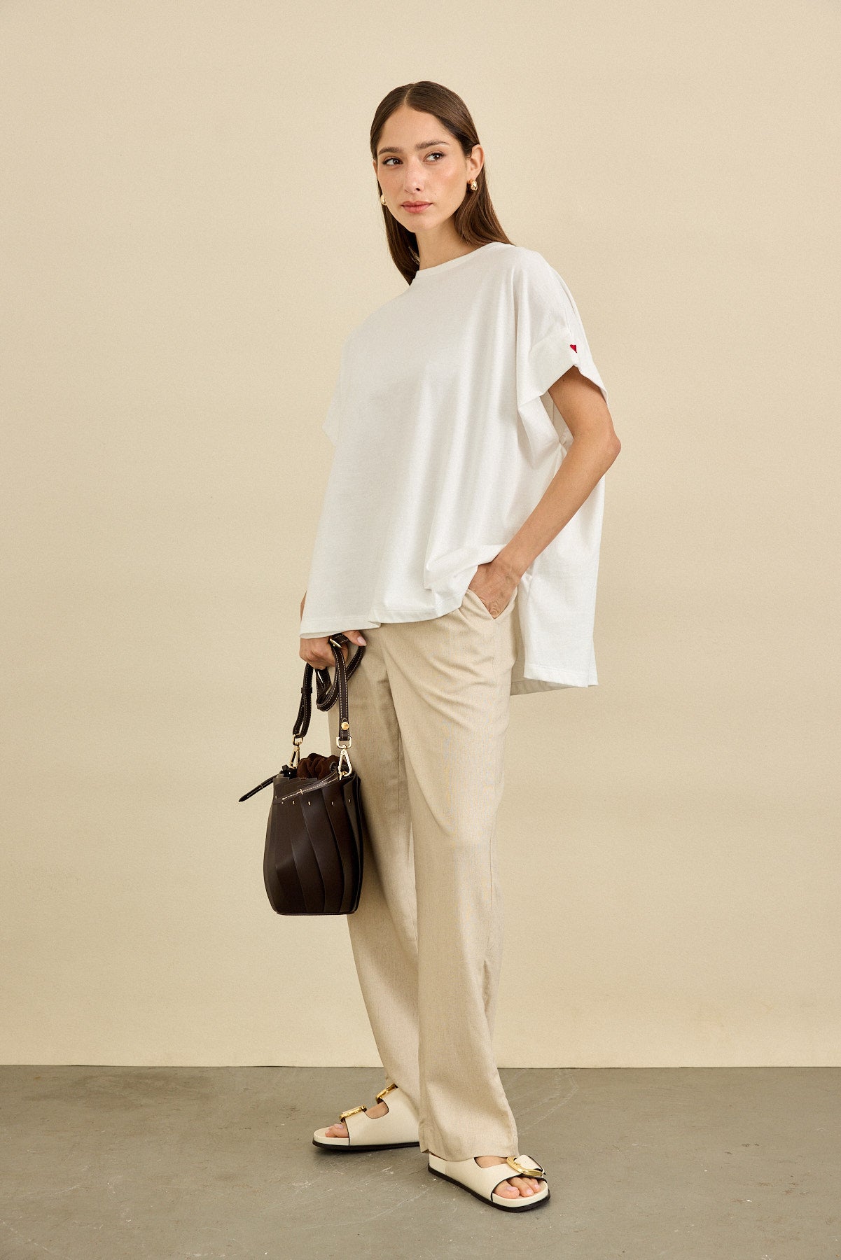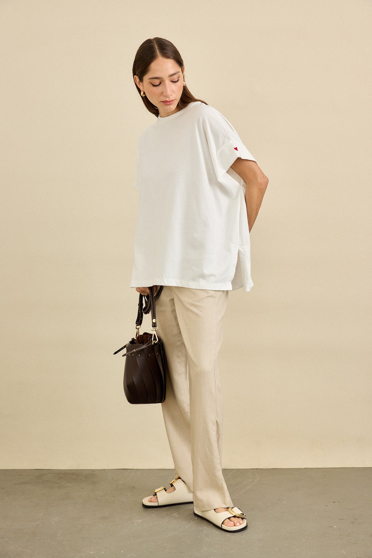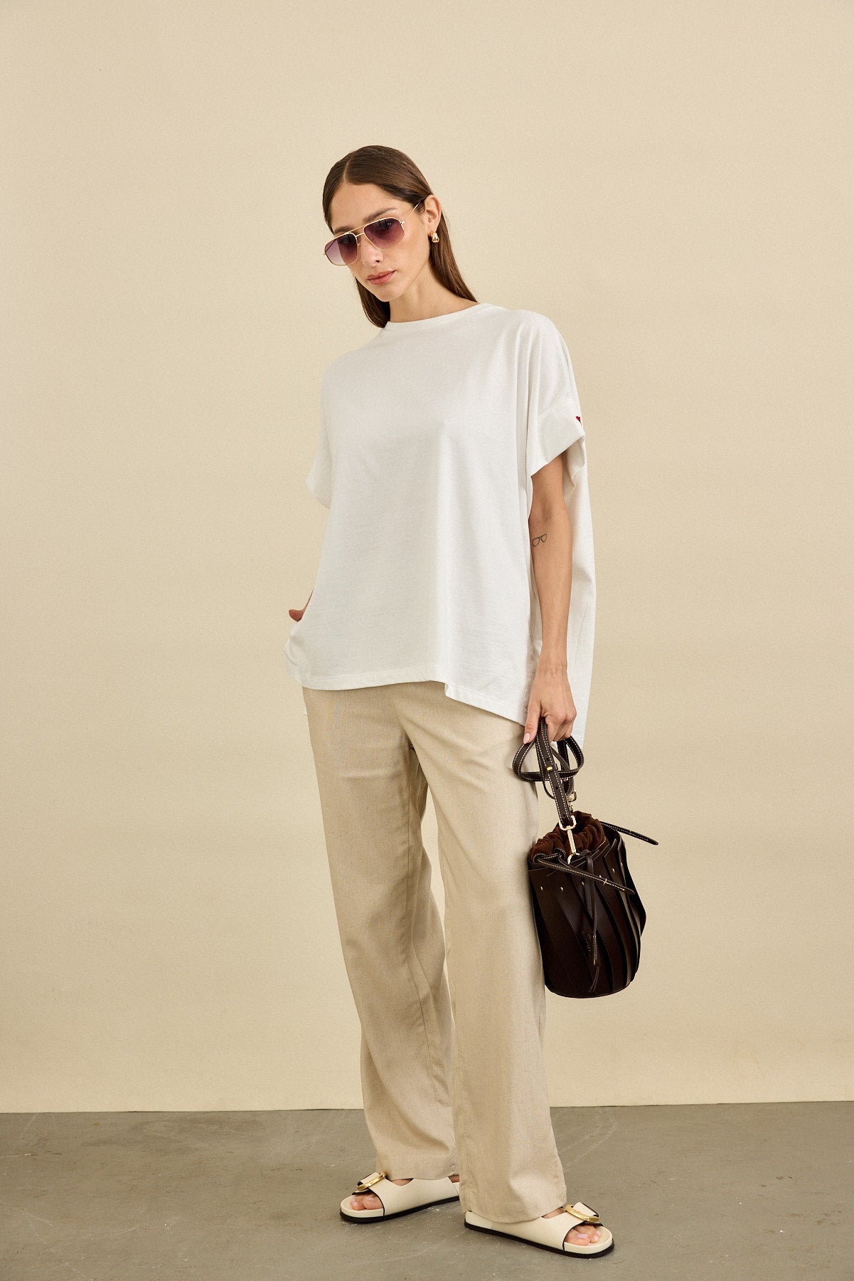 לחולצה אלמנט קיפול מיוחד בכתף, מה שמקנה לה ייחודיות של ממש