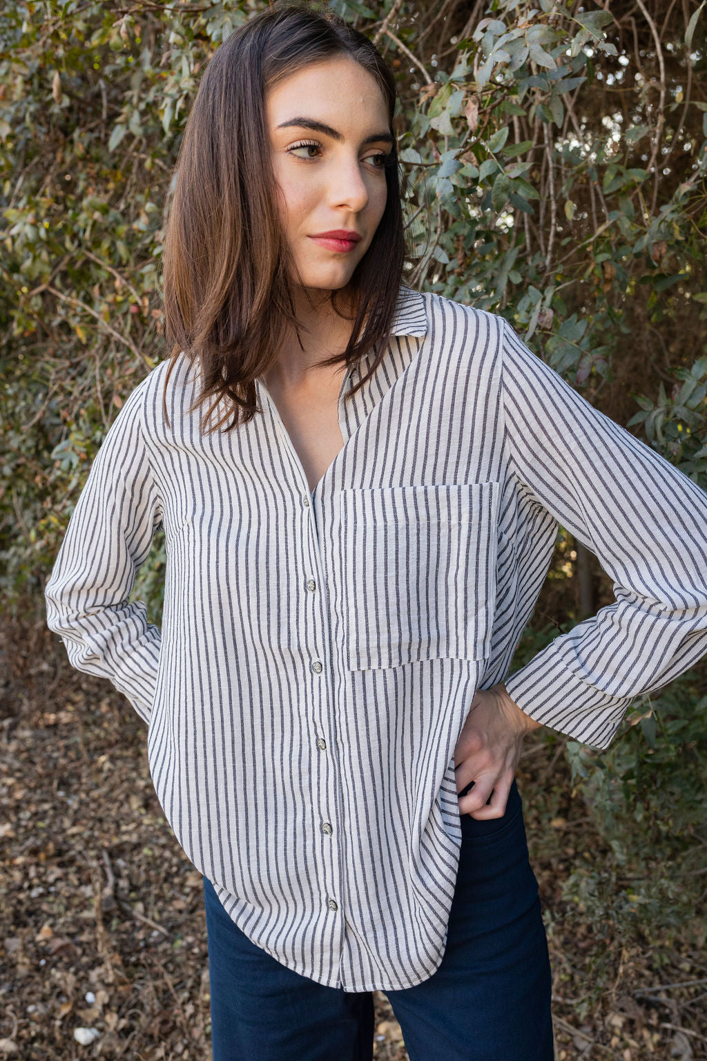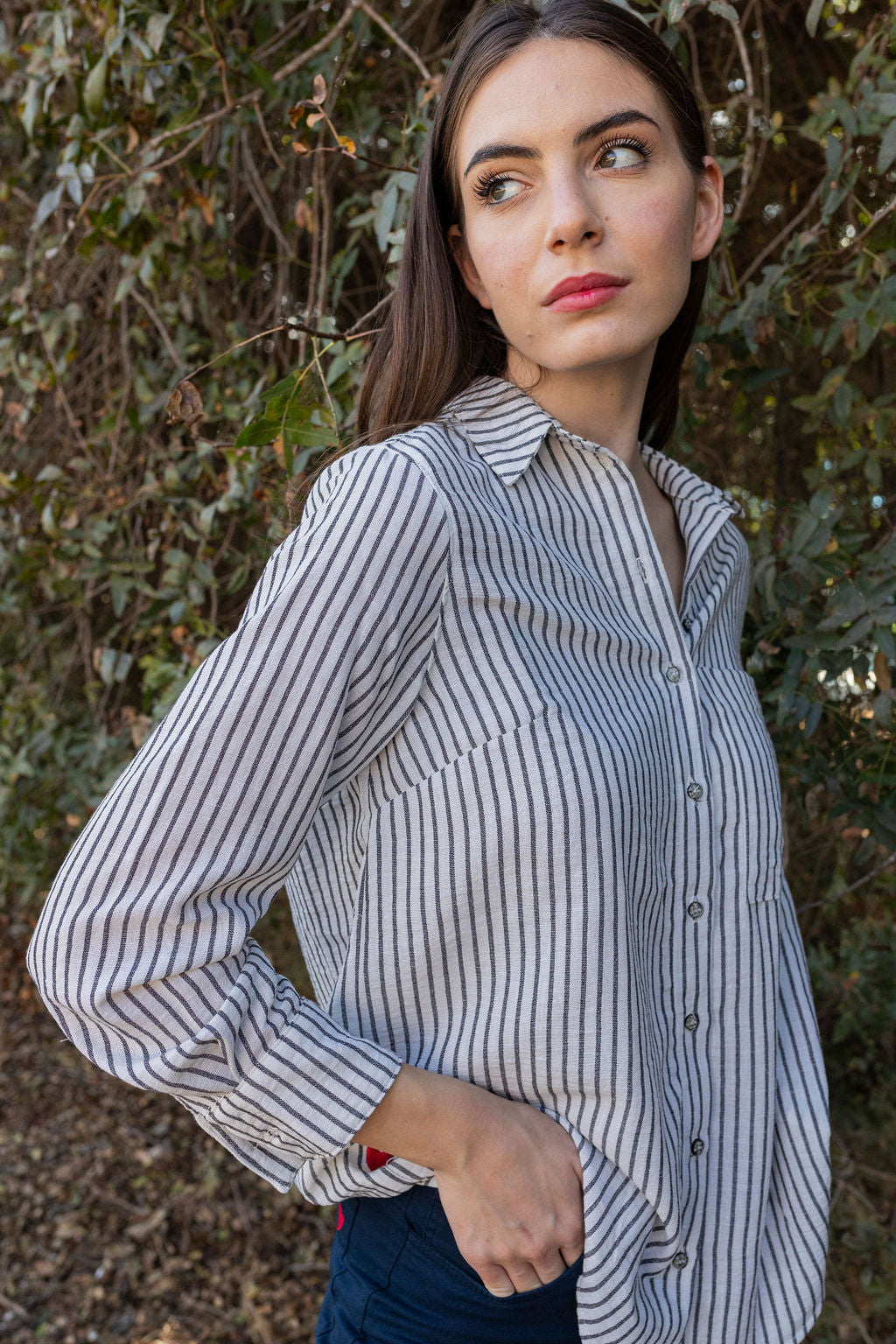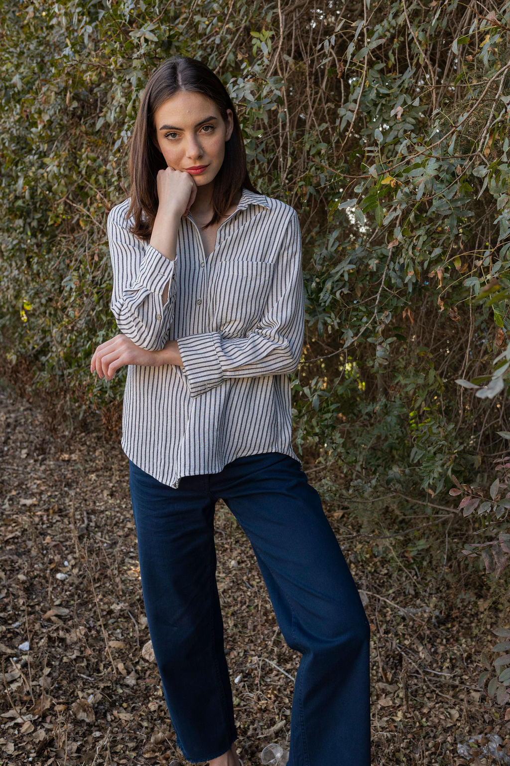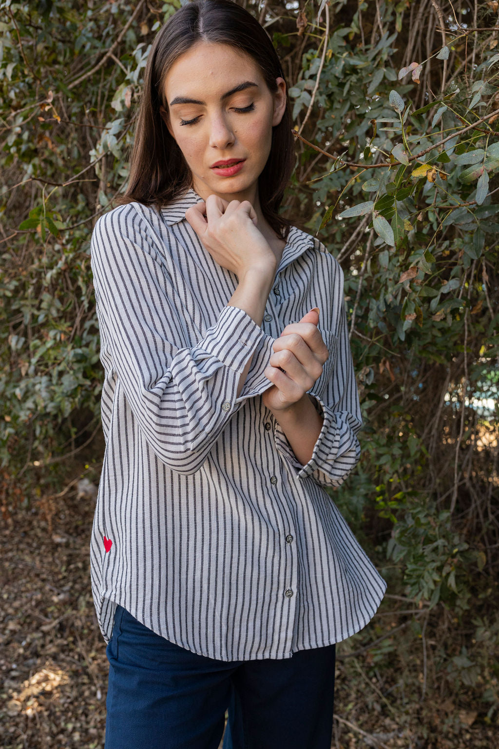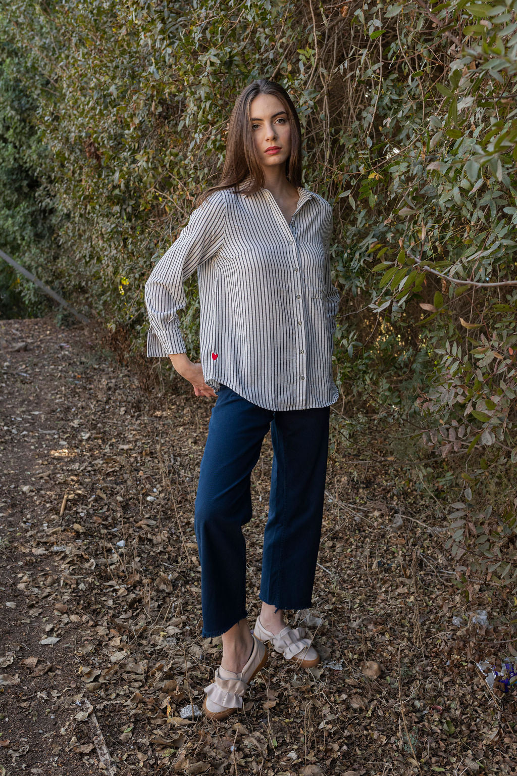 חולצה מכופתרת, נהדרת ללבישה סגורה כחולצה, או פתוחה כעליונית.